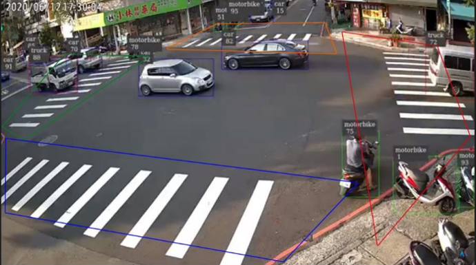 運用人工智慧的影像物件偵測及追踨技術,這技術最有名的是攝影機進行追逐世界足球賽的功能,可以追蹤足球踢動運轉的即時現況;力學將這個技術運用在路側偵測車輛移動及停留等行為,減少人力監看監視器的時間,例如公車停靠站,非公車臨停逾時告警,高鐵、火車站停靠接送人員臨停逾時告警等。